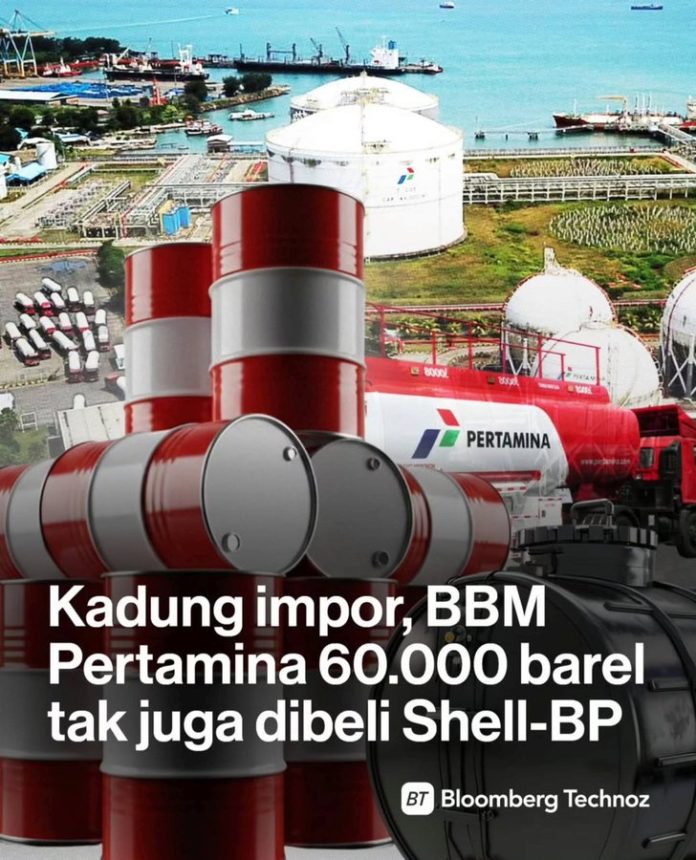 Sebanyak 100.000 barel base fuel yang udah diimpor akhirnya mangkrak, mau dipake sendiri oleh “plat merah”, xixixi.