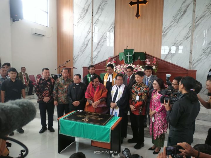 SintesaNews.com JAKARTA – Gubernur DKI Jakarta Pramono Anung menyampaikan sambutan sekaligus meresmikan Gereja Huria Kristen Indonesia (HKI) Tanjung Priok, Jakarta Utara yang sudah selesai direnovasi sehingga dapat dimanfaatkan untuk kegiatan beribadah bagi umat Nasrani di daerah setempat.